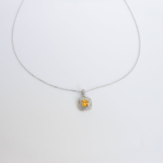 Sterling Silver Cushion Cut Yellow Zirconia Accent Pendant